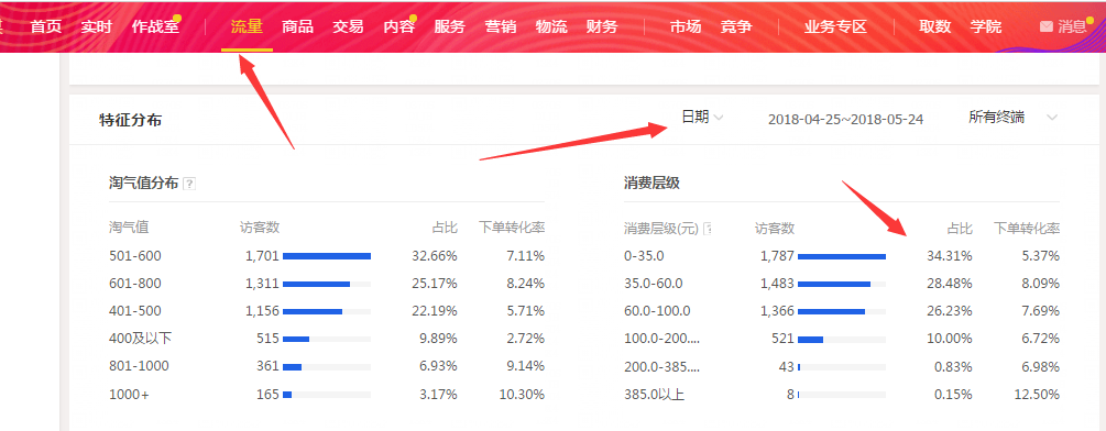 针对人群,针对营销提升转化率,前提在于我们知道店铺人群,在这里我们可以用到生意参谋-流量-访客分析。如图。日期选择三十天