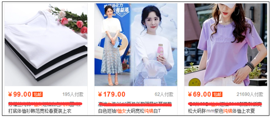 比如,有一个消费者搜索:T恤女 纯棉,如果你把纯棉当成核心属性词,并且选择长尾词了。那么你在拍照、首图设计、详情页设计的时候,都应该围绕着纯棉去展现,比如首图的设计,可能一般的时候,拍模特图做首图,但是如果你想展示纯棉属性,可能摆拍,然后展示细节就要好一些。